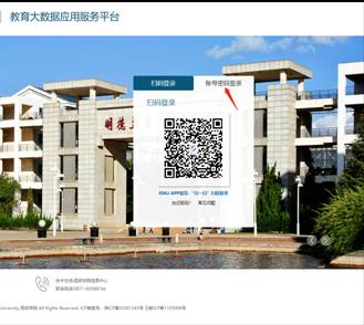 为了进一步促进学校信息化建设,解决数字校园用户的弱密码问题,同时为用户提供更安全、便捷的登录服务,学校数字校园增加KMU APP手机扫码登录方式,与现有的“用户名密码”登录方式同时并存,用户可随意选择其中任一种中登录方式使用,效果一样。
